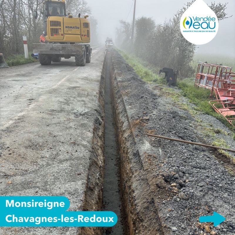 Renforcement d’un réseau Ø180 mm sur environ 3 km. Le chantier est en cours jusqu’à fin avril.